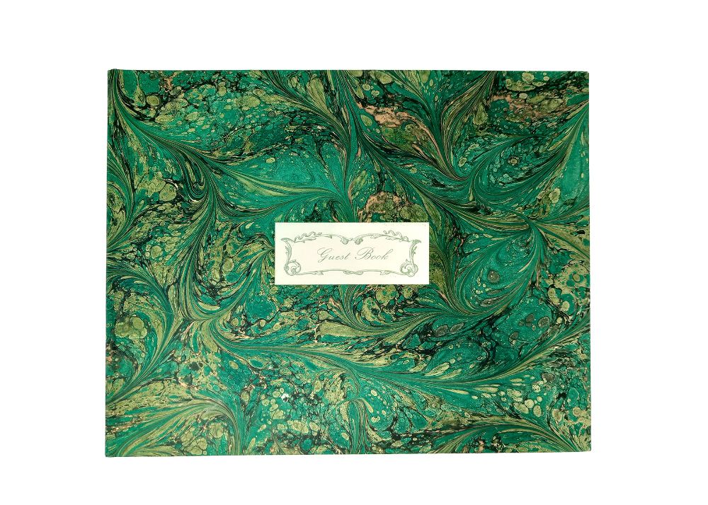 893TC – Hand marbled paper “Guest book”. The inside contains printed pages on ivory paper.