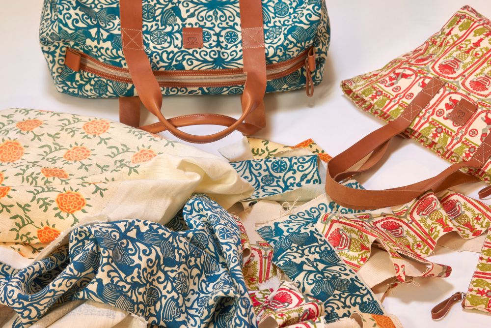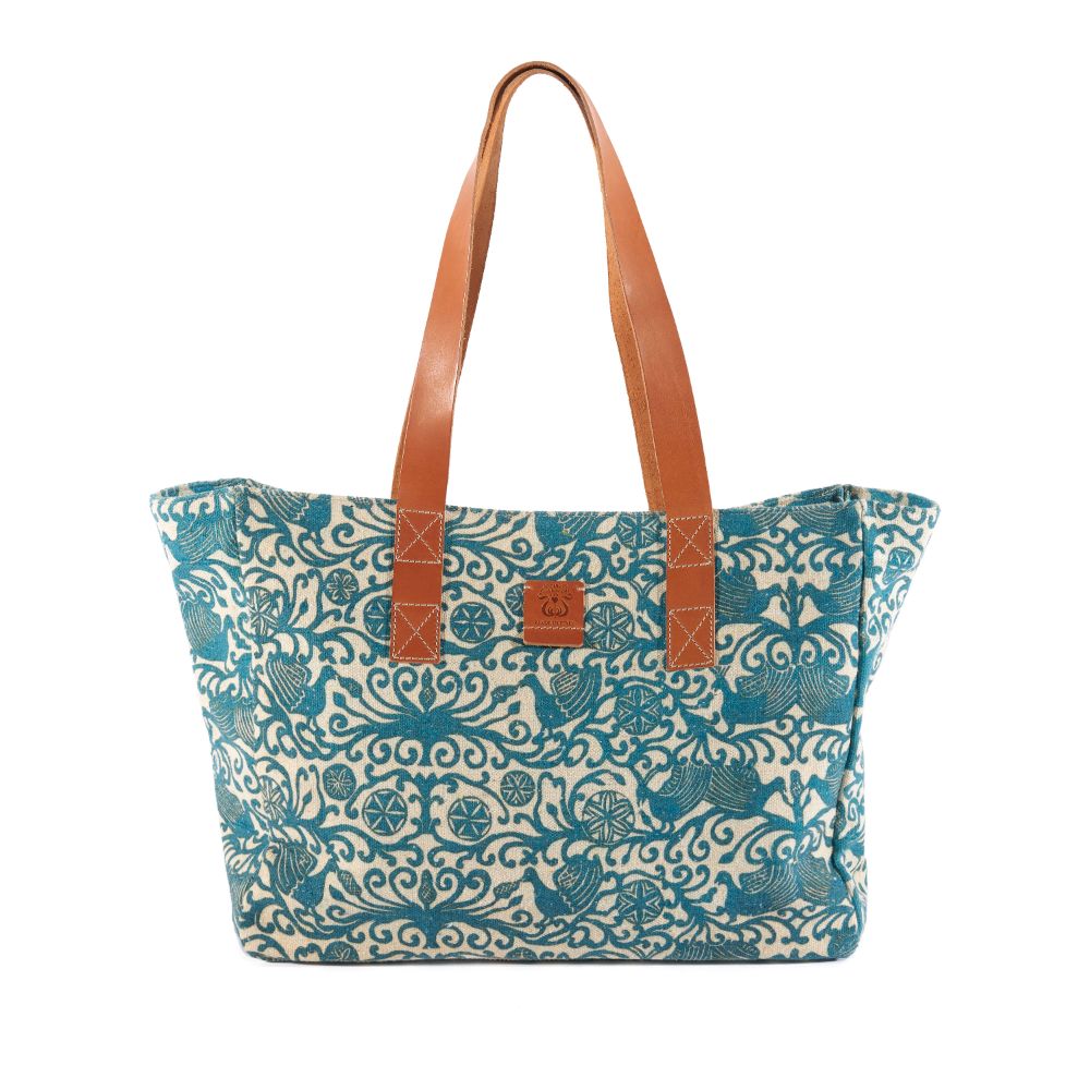 BO/2024B- BORSA in tessuto canvas con stampa di motivo tratto dall’archivio storico di carte xilografate raccolte nell’ “ARTE RUSTICA
