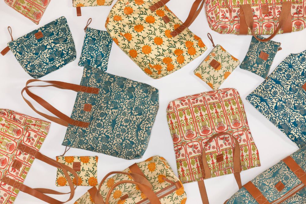 BPS/2024B- Pochette in tessuto canvas con stampa di motivo tratto dall’archivio storico di carte xilografate raccolte nell’ “ARTE RUSTICA