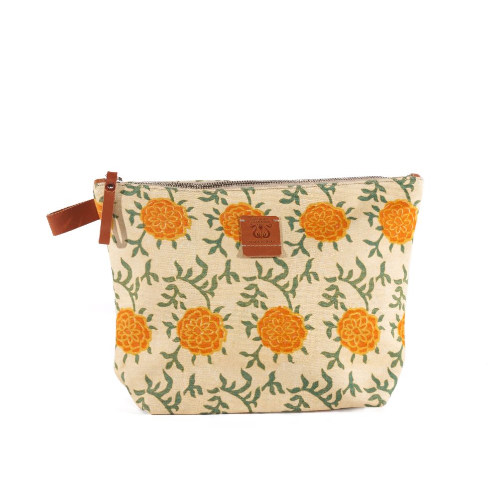 BP/2060- Pochette in tessuto canvas con stampa di motivo tratto dall’archivio storico di carte xilografate raccolte nell’ “ARTE RUSTICA